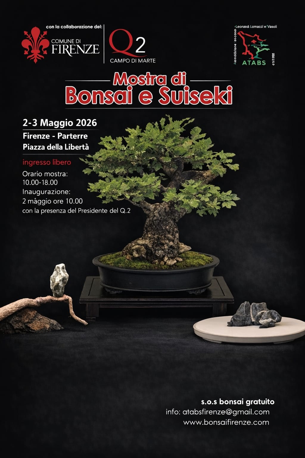Si rinnova anche per il 2026 lo storico appuntamento con la mostra di bonsai e suiseki alla Sala dei Marmi al Parterre, a cura dell'A.T.A.B.S. Associazione Toscana Amatori Bonsai e Suiseki con la collaborazione del Quartiere 2; per l'occasione sarà anche presente, come da consuetudine, il punto S.O.S Bonsai, servizio gratuito per aiutare i nostri piccoli amici verdi.