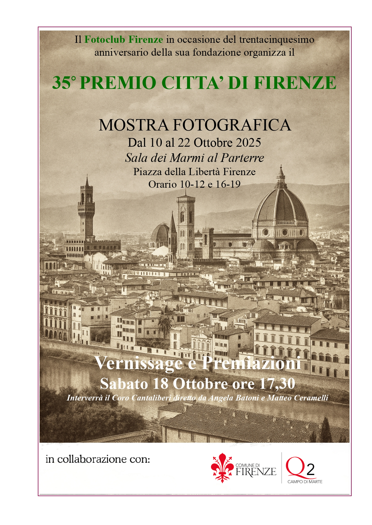 Nuova mostra fotografica alla Sala dei Marmi al Parterre, dal 10 al 22 Ottobre 2025, in occasione del 35° Premio Città di Firenze a cura del Fotoclub Firenze con la collaborazione del Quartiere 2.
