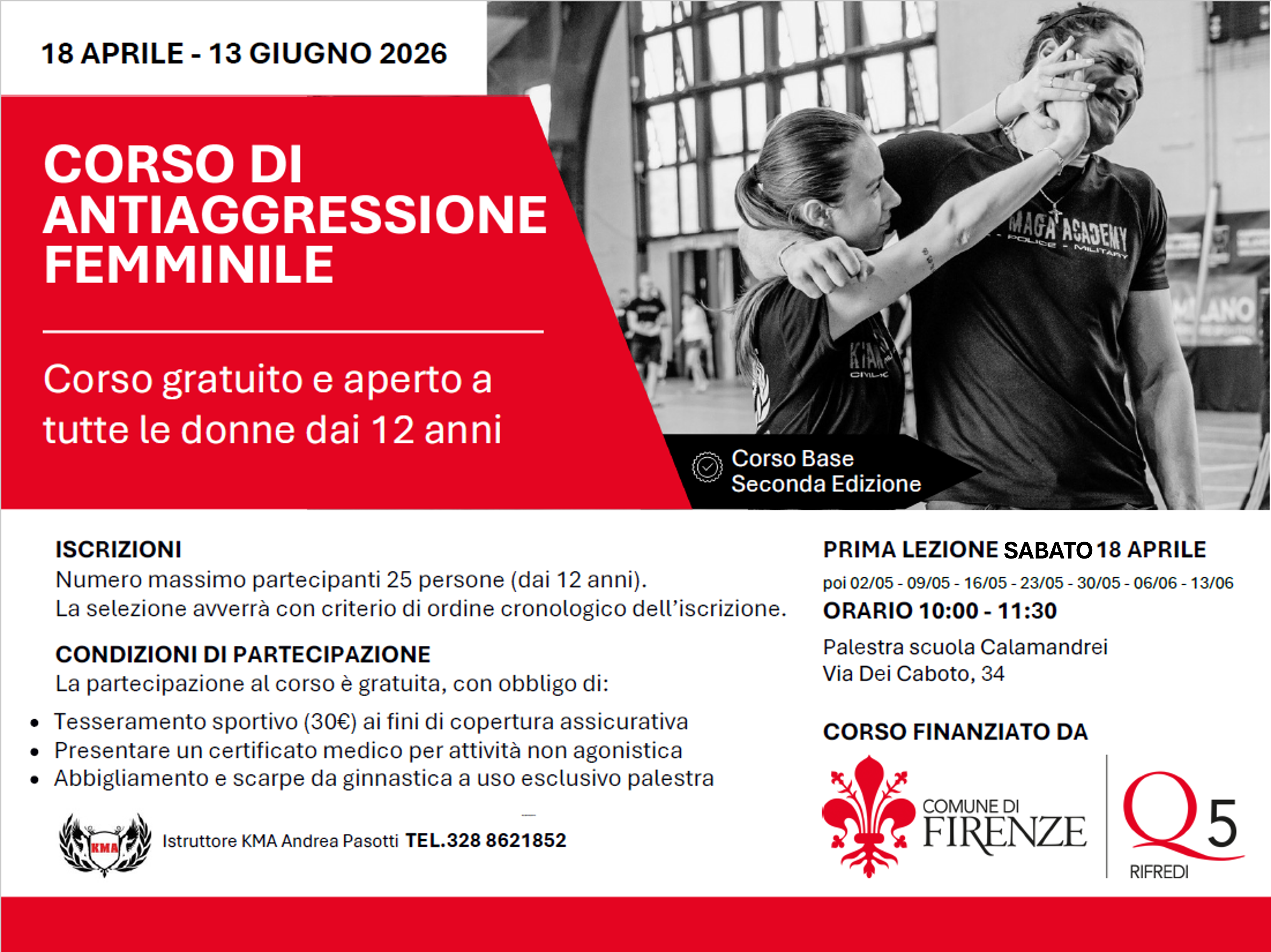 Per iscrizioni: istruttore KMA Andrea Pasotti telefono 328 8621852