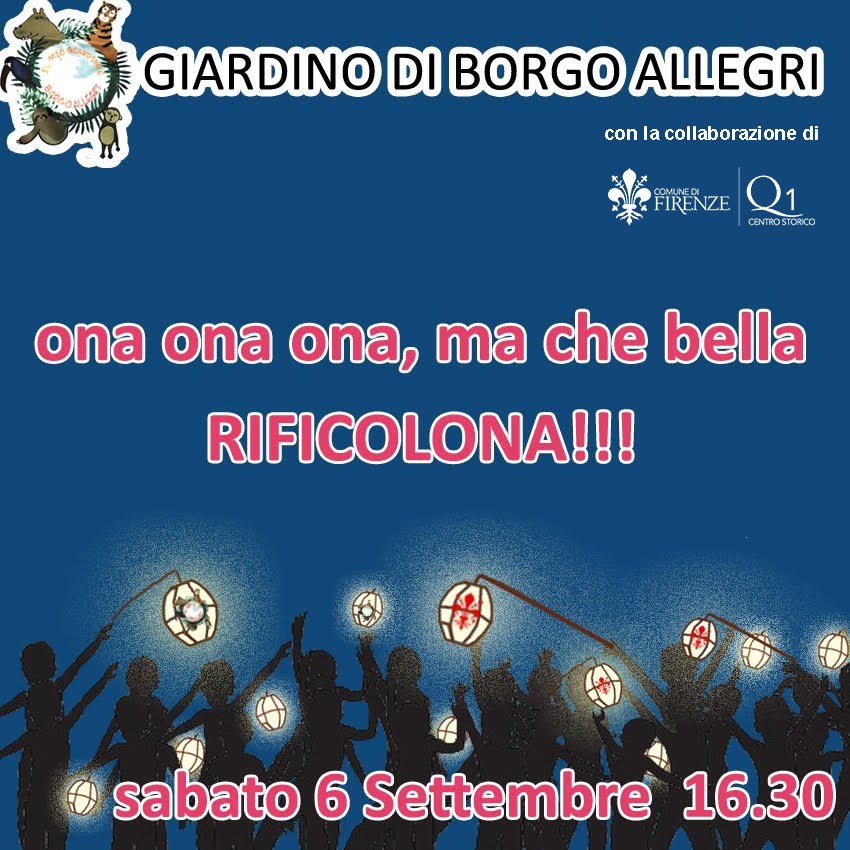 L'iniziativa, consuetudine ormai da diversi anni, si terrà sabato 6 settembre alle ore 16.45 presso il Giardino di Borgo Allegri. Si tratta di un laboratorio dove i bimbi potranno costruire/decorare la propria rificolona a partire dalle ore 16.45, e dato che il lavoro mette fame, seguirà anche una gustosa merenda.