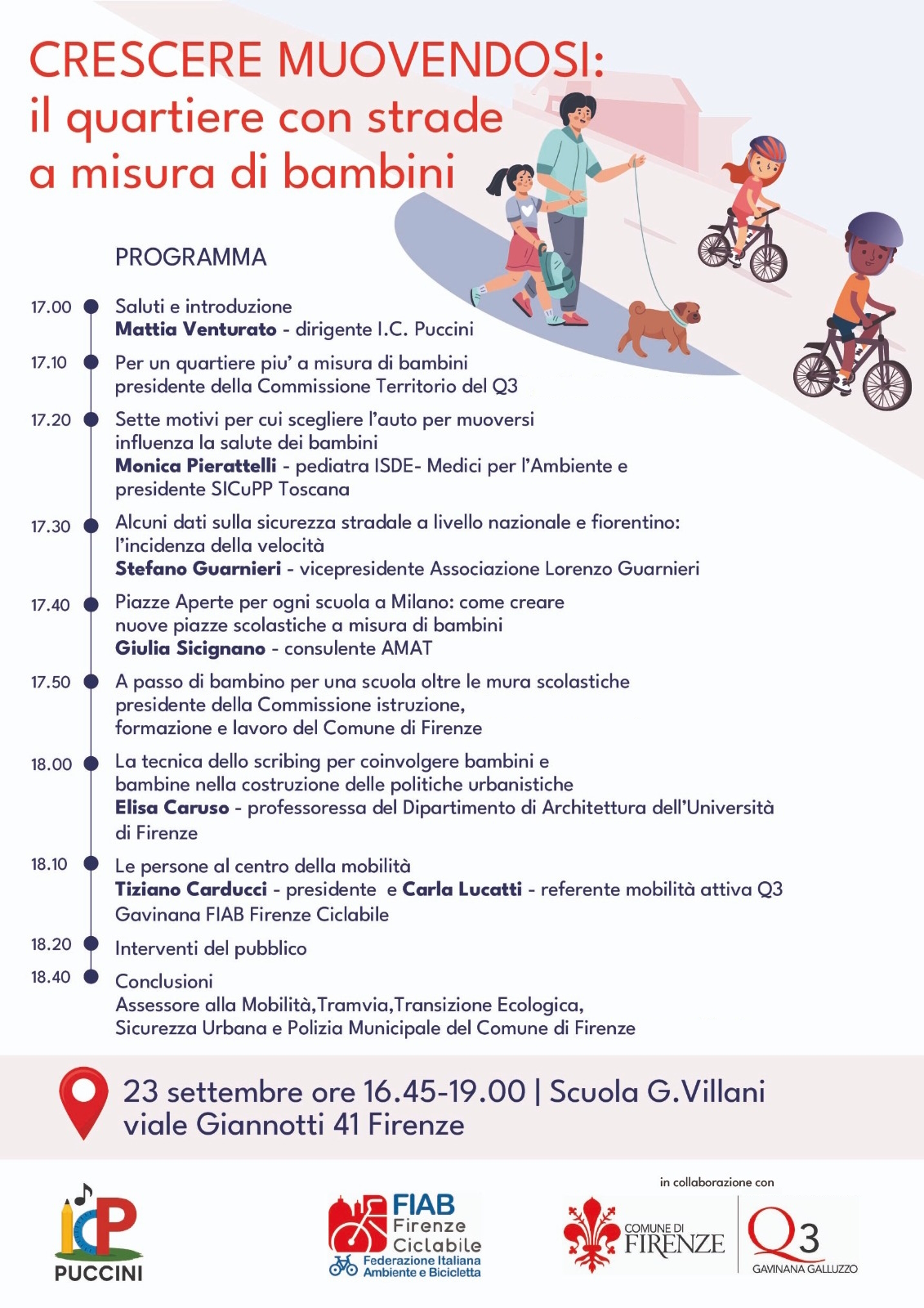 L’incontro, rivolto ai genitori, insegnanti e cittadini interessati si terrà il giorno 23 settembre 2025 alle ore 16:45 presso la scuola G. Villani, Viale Giannotti 41 a Firenze, e si articolerà in una serie di interventi di 10’ circa con, al termine, una breve discussione. L’obiettivo è proporre una riflessione sul tema della mobilità, intesa non solo come spostamento fisico, ma anche come accesso alle opportunità, agli spazi e alla vita sociale del territorio. Spesso questi cambiamenti avvengono senza coinvolgere direttamente i ragazzi, che invece dovrebbero essere considerati protagonisti attivi del processo.