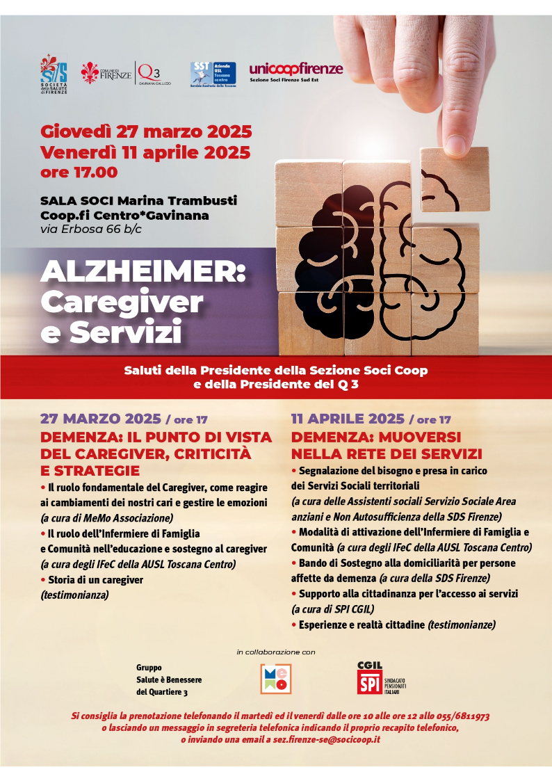 del Centro Coop di Gavinana (via Erbosa 66 b/c) per parlare di Alzheimer, dei caregiver e dei servizi connessi.