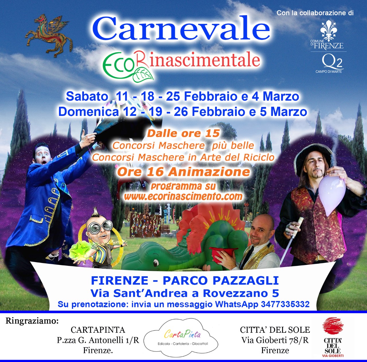 Sabato 11, 18 e 25 Febbraio e 4 Marzo e Domenica 12, 19 e 26 Febbraio e 5 Marzo a partire dalle ore 15.00, presso il Parco d'Arte Pazzagli in Via Sant'Andrea a Rovezzano n.5, si terrà il Carnevale EcoRinascimentale 2023, promosso dall'Associazione EcoRinascimento con la collaborazione del Quartiere 2.