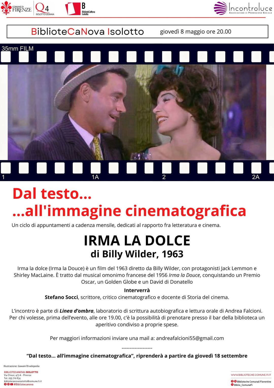 Giovedì 8 maggio alle ore 20.00, la Biblioteca Canova Isolotto ospita un nuovo appuntamento del ciclo “Dal testo... all'immagine cinematografica”, un’iniziativa a cadenza mensile dedicata al dialogo tra letteratura e cinema.
