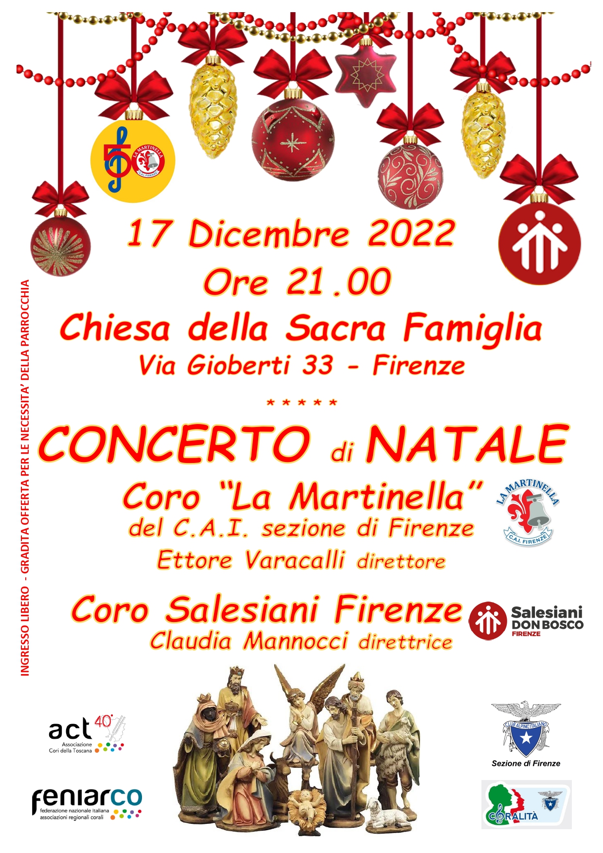 Il concerto vedrà la partecipazione del Coro dei Salesiani di Firenze, diretto dal Maestro Claudia Mannocci, e del Coro "La Martinella" del C.A.I. di Firenze, diretto dal Maestro Ettore Varacalli.