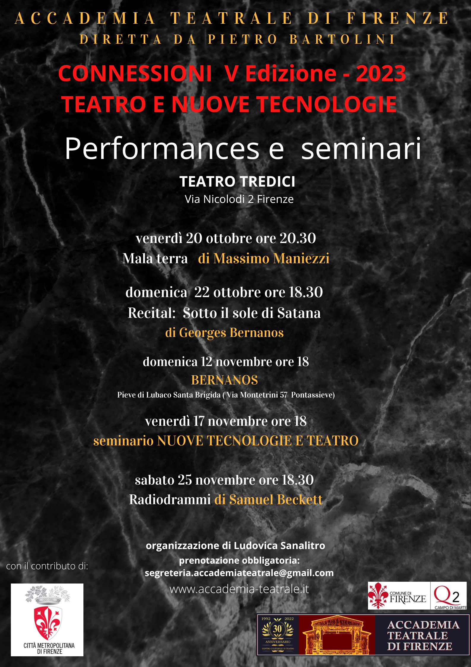 Per la partecipazione è necessaria la prenotazione, da effettuare tramite mail all'indirizzo segreteria.accademiateatrale@gmail.com.