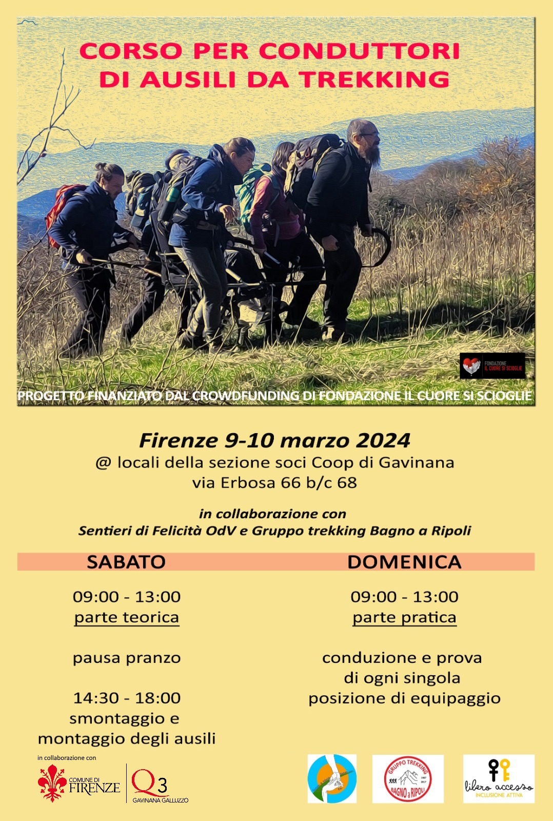Libero Accesso, associazione di Firenze impegnata nell’ideazione di attività inclusive nel turismo e nella fruizione del patrimonio culturale, propone un corso di formazione gratuito per imparare a condurre una K-bike, dispositivo speciale per il trekking accessibile a tutti, indipendentemente dalle abilità fisiche. L’acquisto della K-bike, la prima in arrivo nel territorio di Firenze, e il corso di formazione sono l’esito della raccolta fondi che Libero Accesso ha organizzato lo scorso autunno grazie al supporto della Fondazione Il cuore si scioglie, delle sezioni soci della COOP di Bagno a Ripoli e Gavinana e del Gruppo Trekking di Bagno a Ripoli.