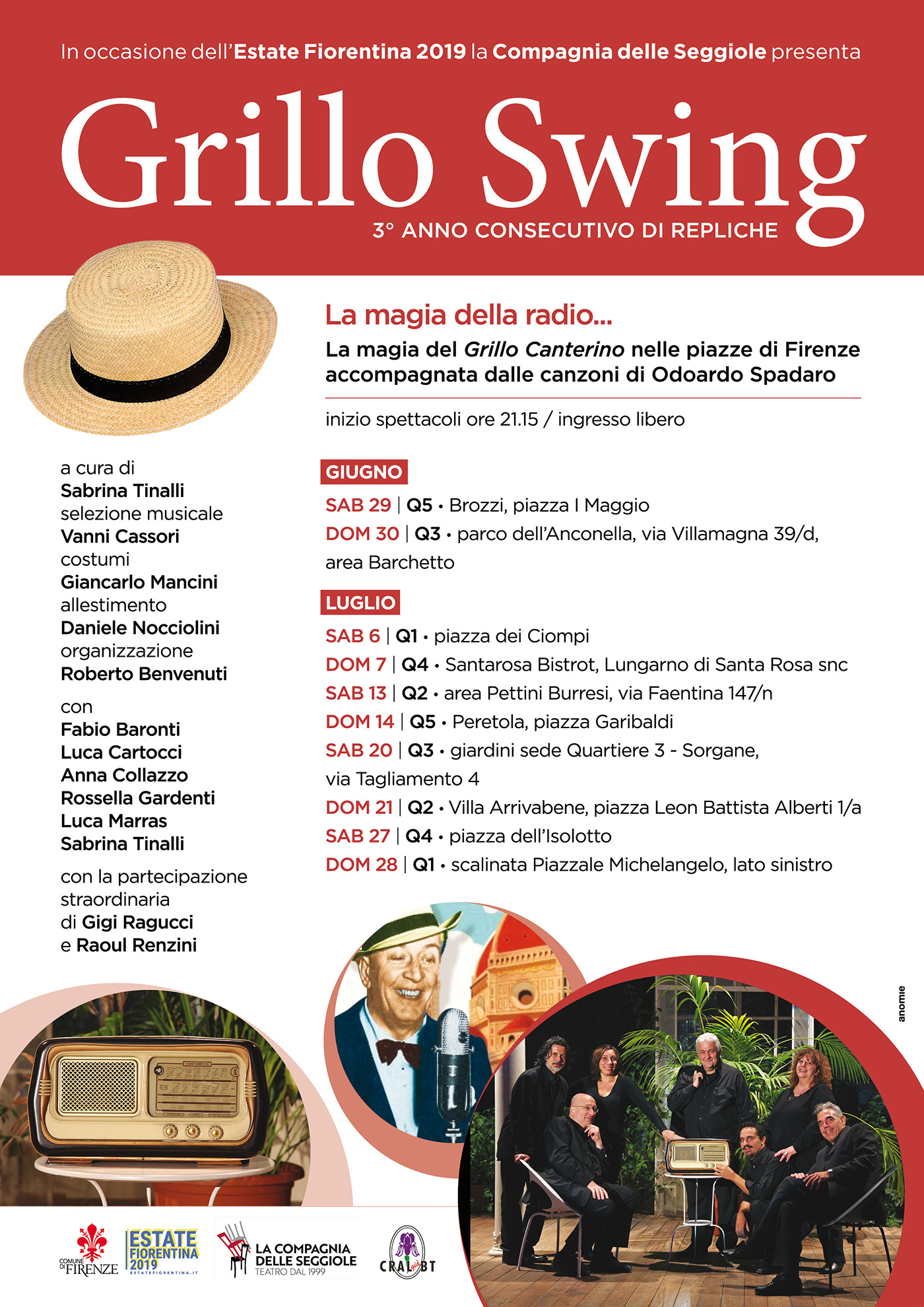 Domenica 7 e sabato 27 luglio la Compagnia delle Seggiole ripropone la terza stagione del “Grillo Swing”