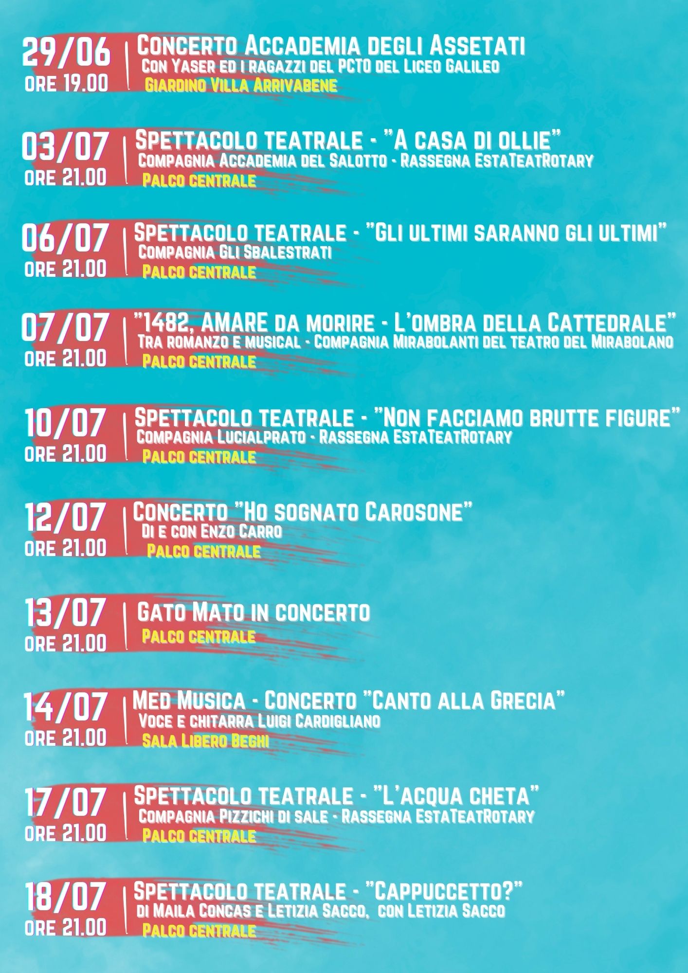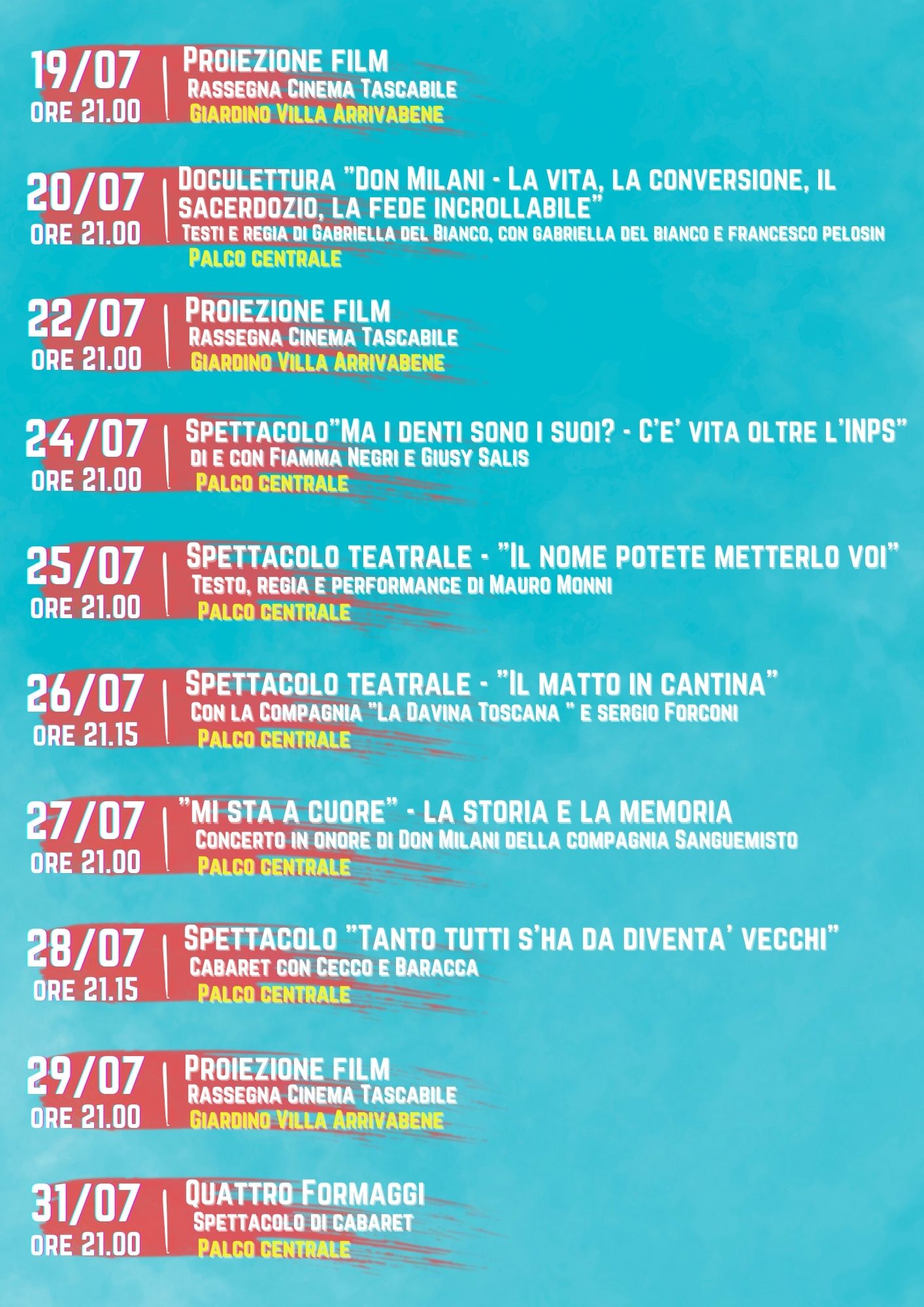Di seguito il programma degli eventi previsti fino al 10/08.