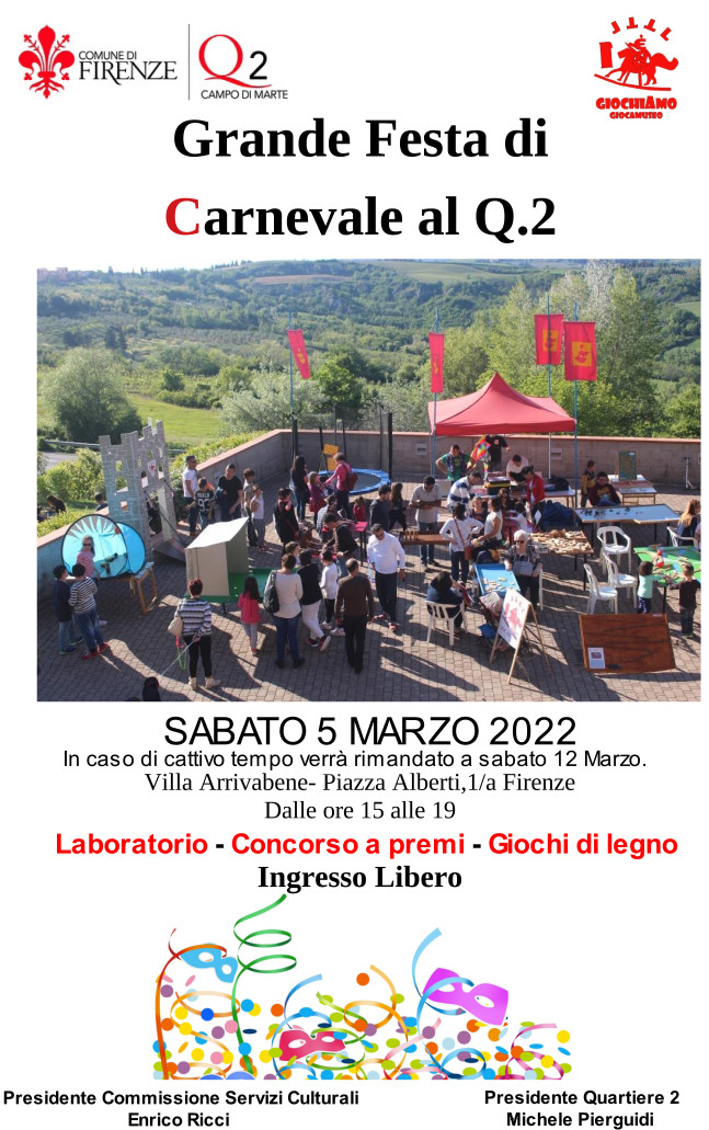 Grande Festa di Carnevale con Giocamuseo al Quartiere 2!
