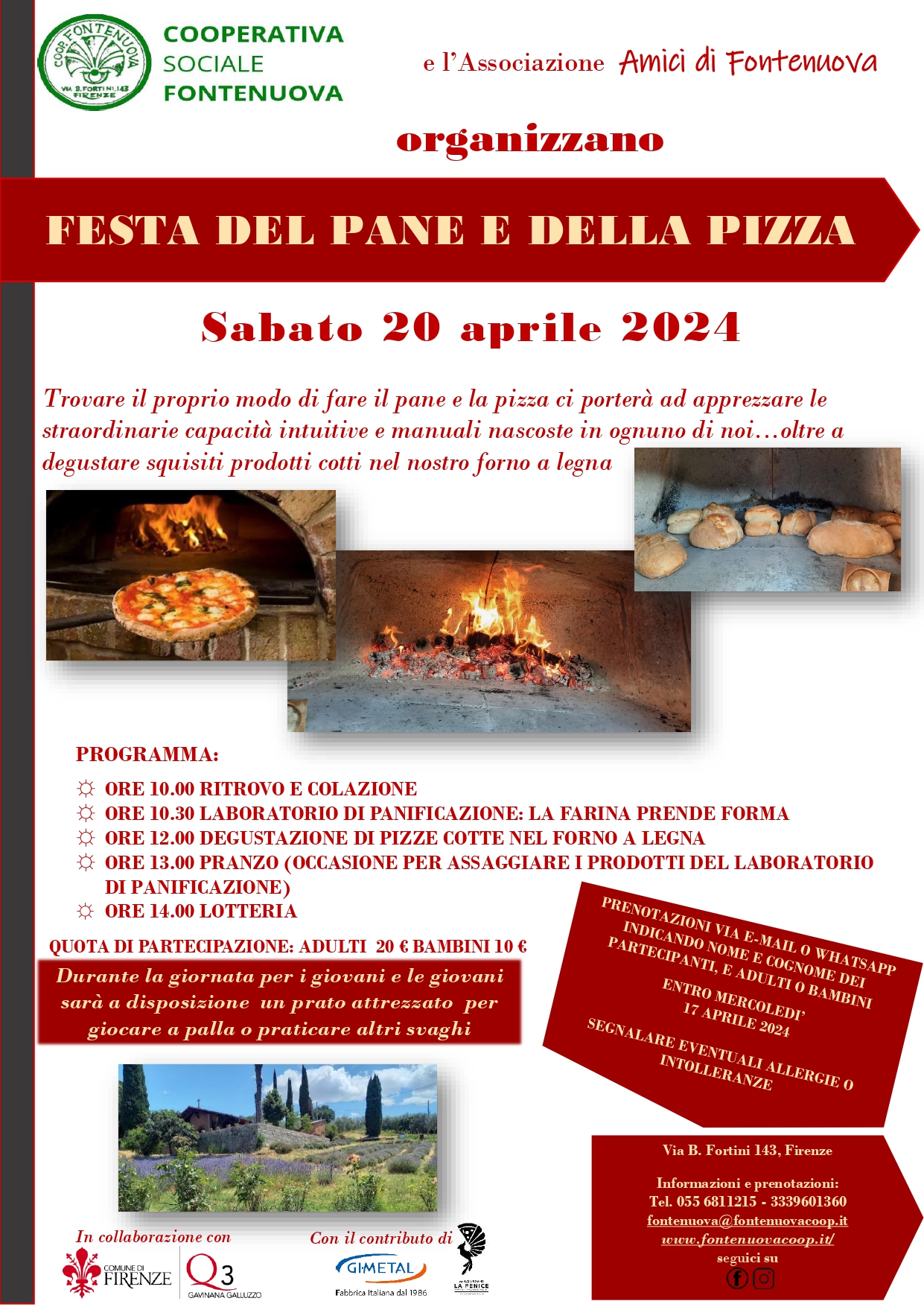 La Cooperativa Fontenuova in collaborazione con l’Associazione Amici di Fontenuova organizza sabato 20 aprile 2024 la festa del pane e della pizza.