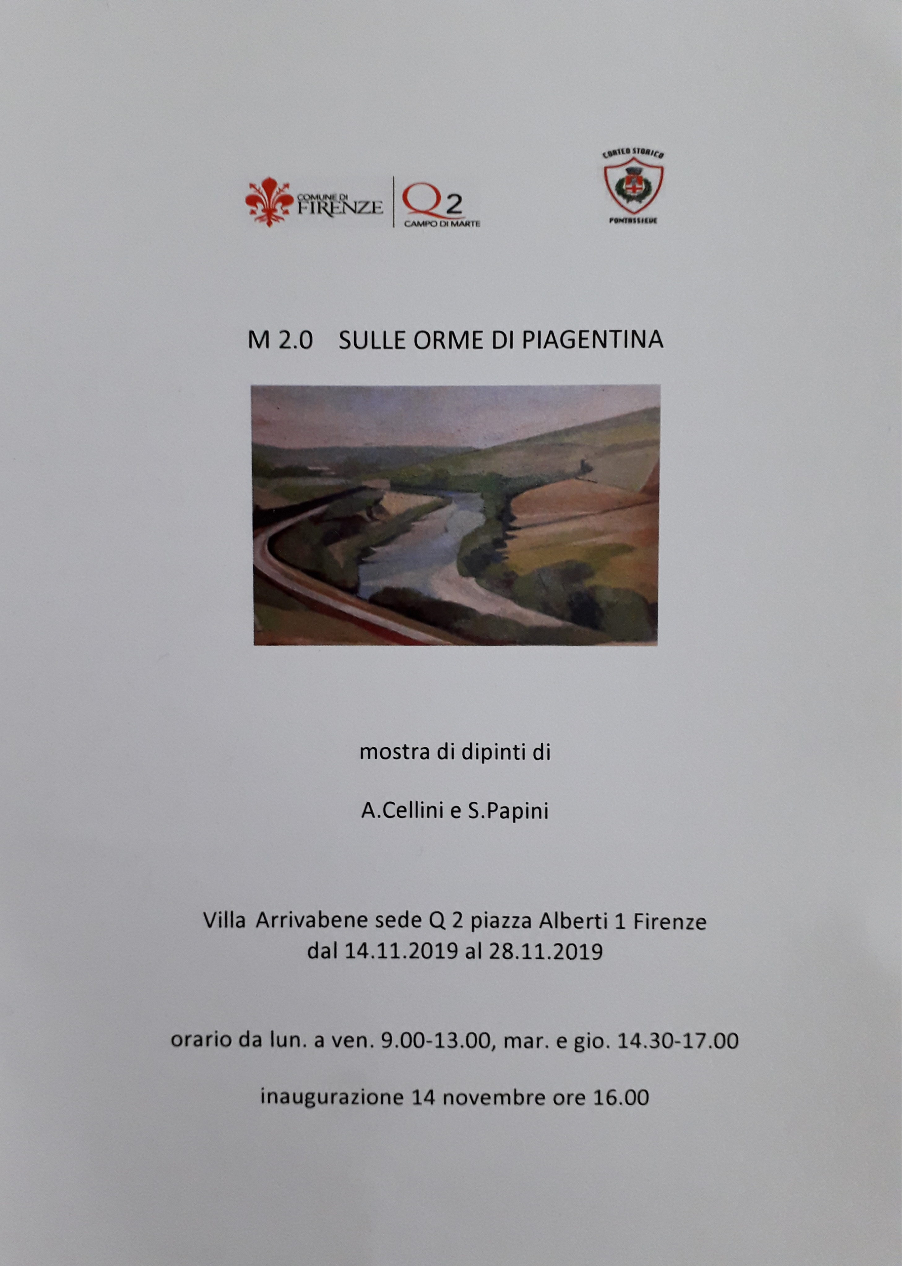 Il progetto di questa mostra di dipinti nasce da un'idea legata al luogo che la ospita: la storica villa Arrivabene sede del Quartiere 2 di Firenze. Situata a ridosso di via della Piagentina, luogo amato e celebrato dai macchiaioli che, nel decennio 1860-70, divenne soggetto di dipinti celebri dei vari Lega, Signorini, Abbati, Borrani.