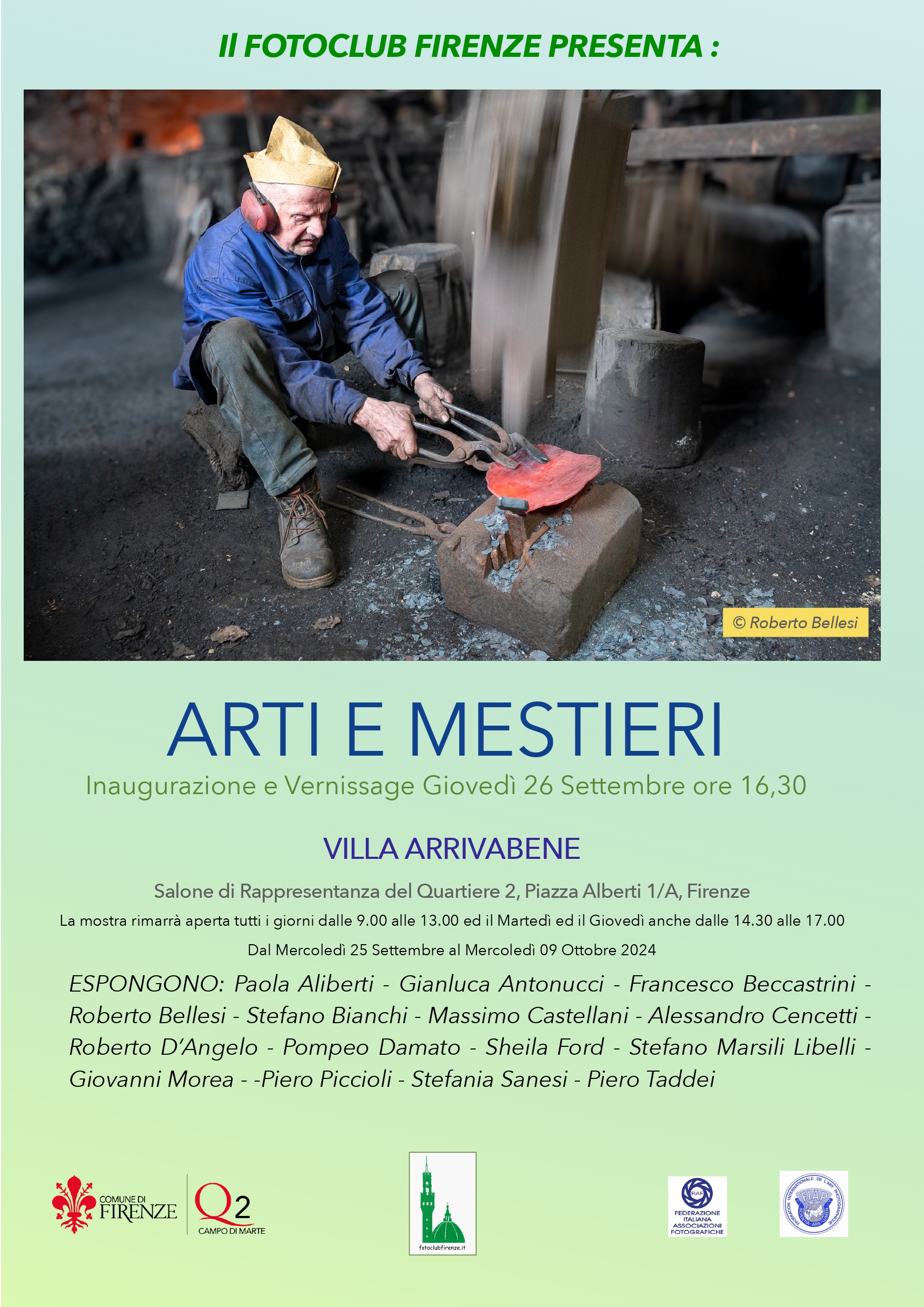 Nuova mostra in Villa Arrivabene a cura del Fotoclub Firenze con la collaborazione del Quartiere 2, incentrata quest'anno sui mestieri e sugli artigiani.