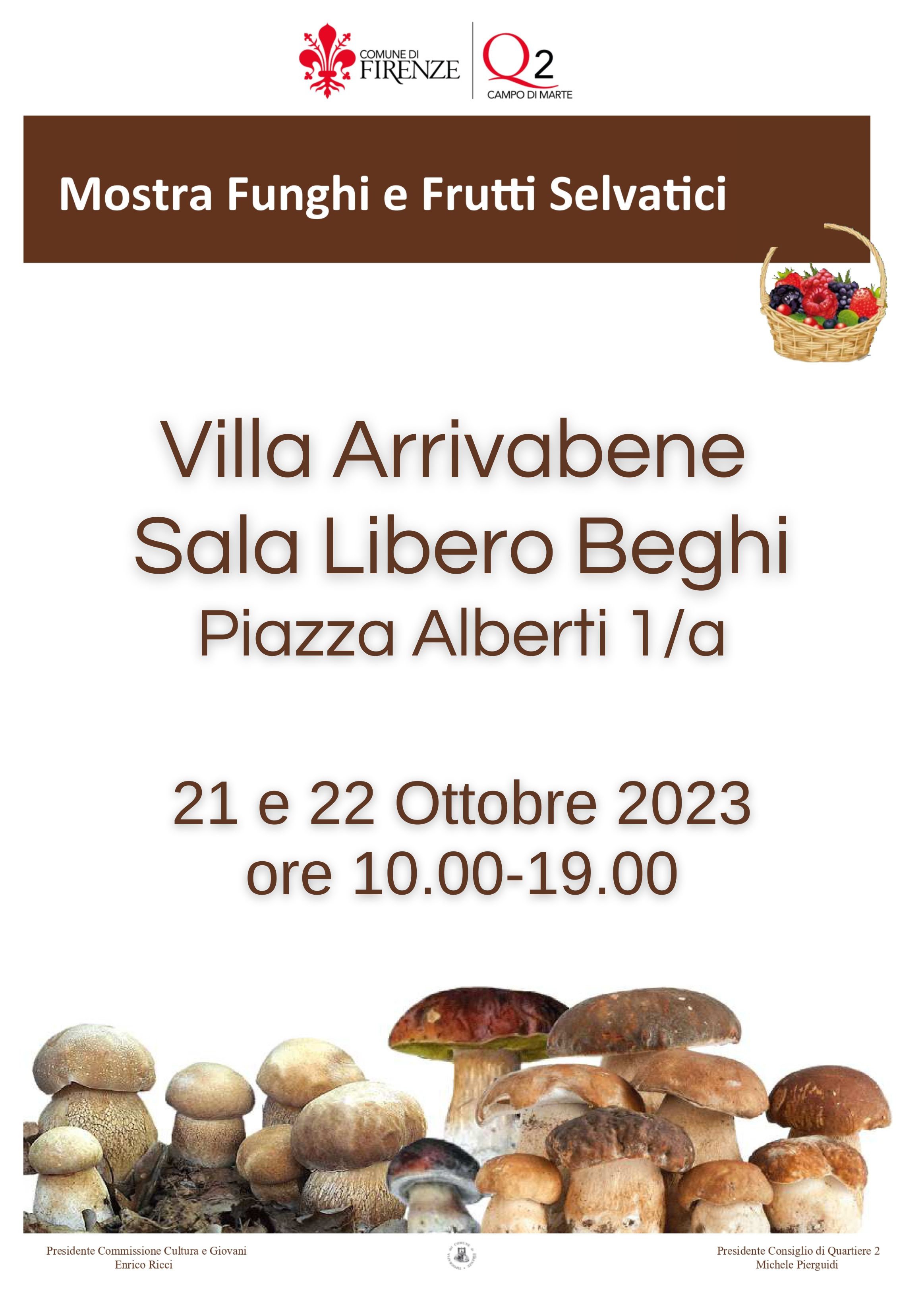 Il 21 e il 22 Ottobre, dalle 10 alle 19, sarà in esposizione, ad ingresso libero e gratuito, presso la Sala Libero Beghi in Villa Arrivabene la Mostra di Funghi e Frutti selvatici, promossa dal Gruppo Micologico Fiorentino "P. A. Micheli" in collaborazione con il Quartiere 2.