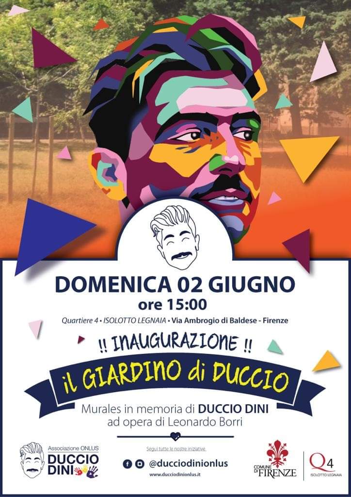 L’area verrà intitolata a Duccio e diventerà il “Giardino di Duccio”, il luogo in cui lui e i suoi amici hanno trascorso l’adolescenza e che porterà per sempre il suo nome.