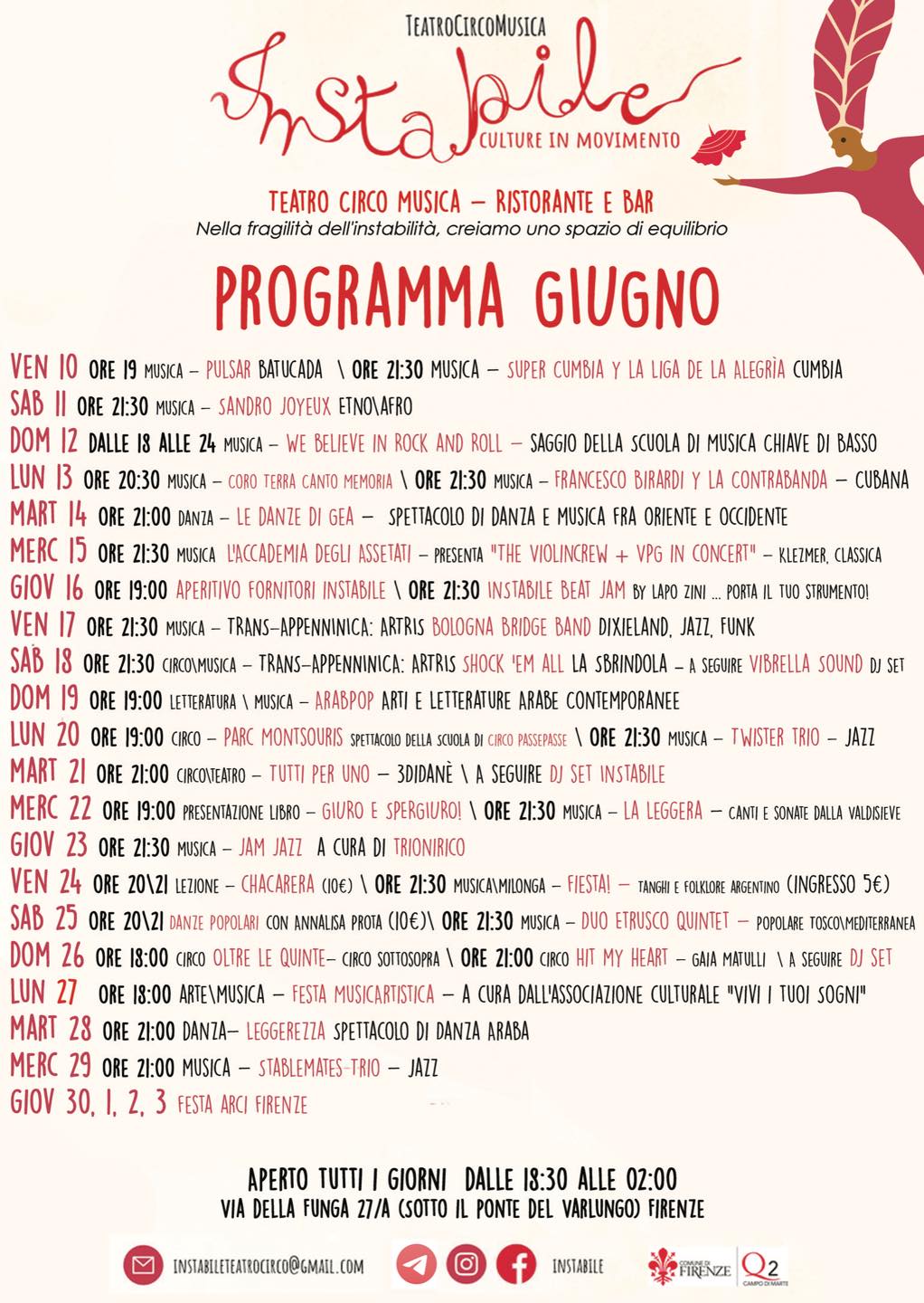 Disponibile il calendario degli eventi di Giugno in programma al presidio InStabile-Chapiteau