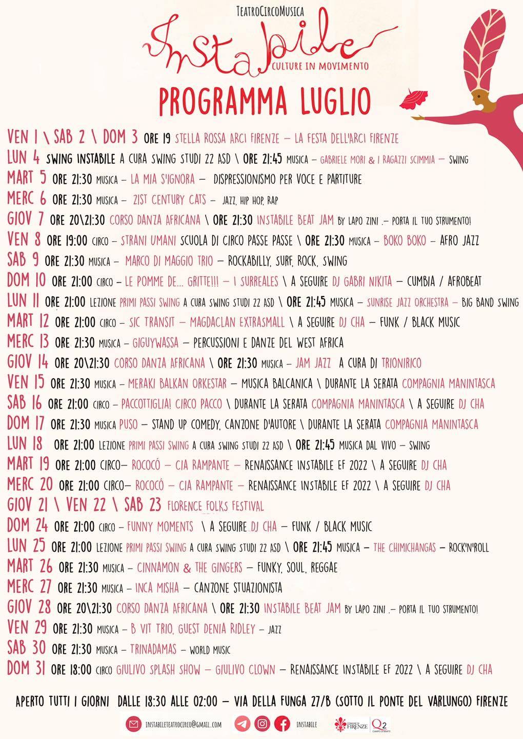 Disponibile il calendario degli eventi di Luglio in programma al presidio InStabile-Chapiteau