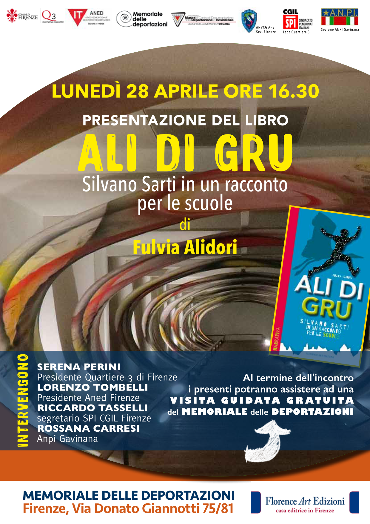 Lunedì 28 aprile alle ore 16:30 si terrà la presentazione del libro "Ali di Gru. Silvano Sarti in un racconto per le scuole" scritto da Fulvia Alidori. La presentazione si terrà presso il Memoriale delle Deportazioni (viale D. Giannotti 75/81 Firenze).
