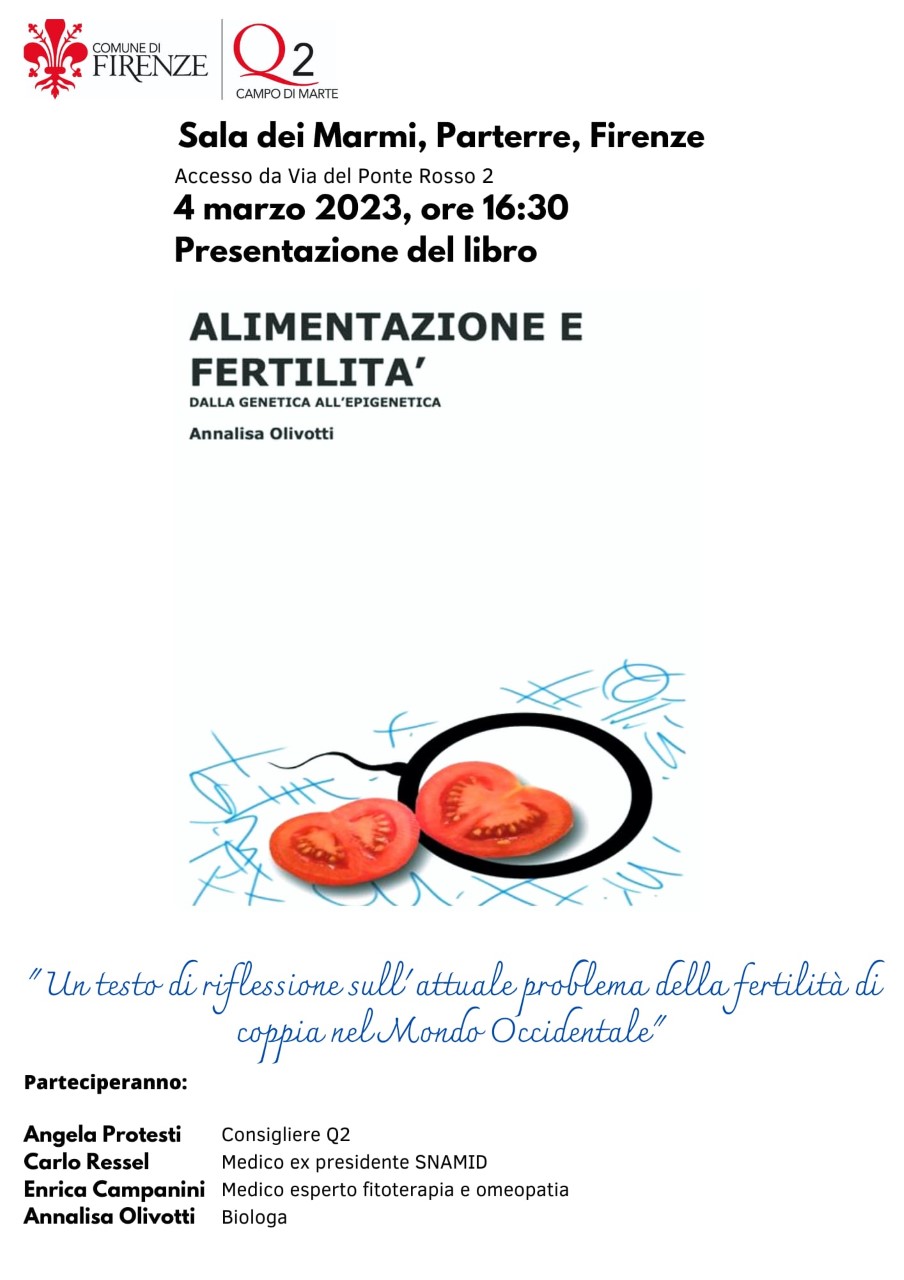 Sabato 4 Marzo 2023 alle ore 16.30, nella Sala dei Marmi in Piazza Libertà, si terrà la presentazione del libro "Alimentazione e fertilità - dalla genetica all'epigenetica"; un testo che invita a riflettere sull'attuale problema della fertilità nel mondo occidentale.