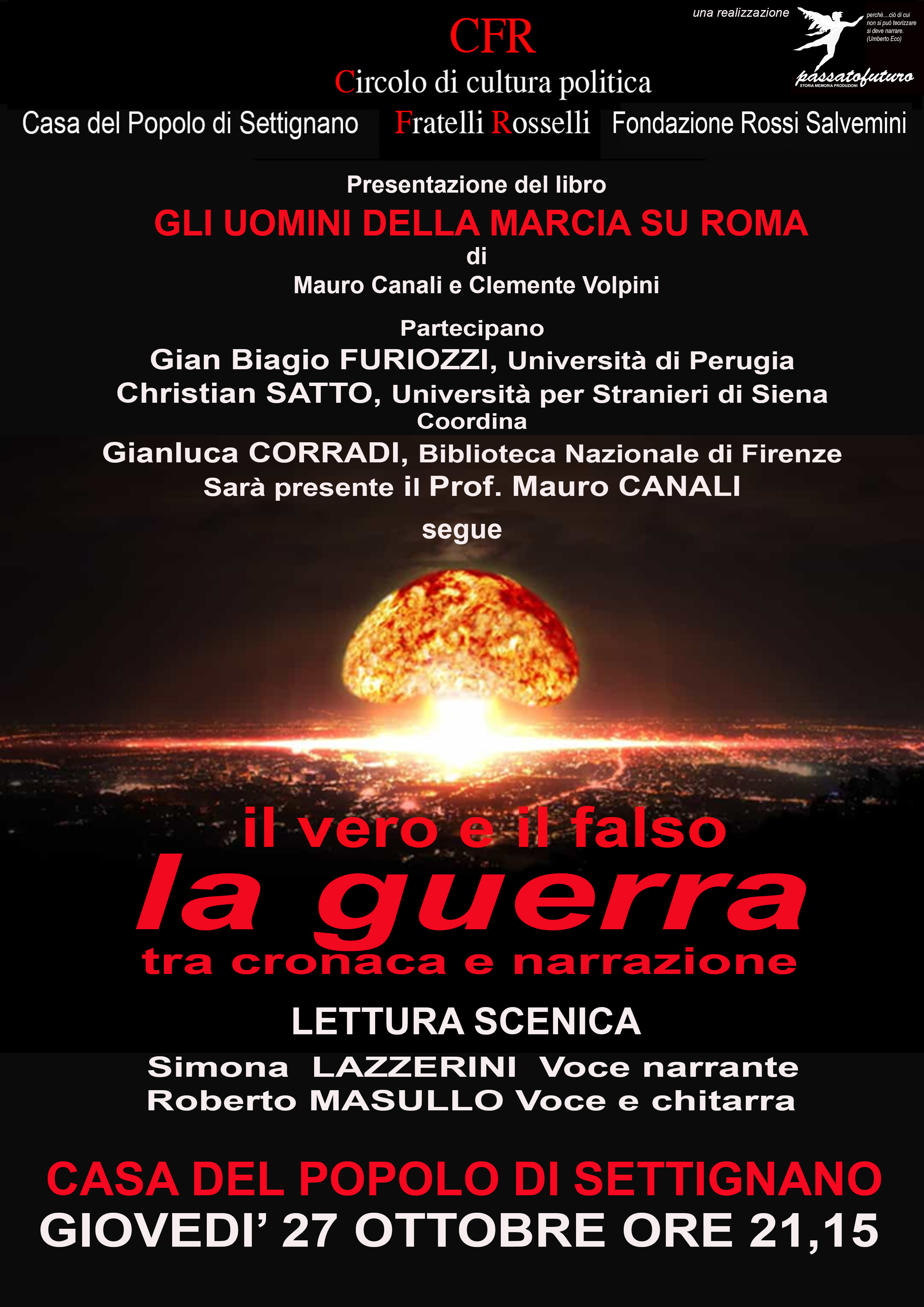 Il 27 Ottobre 2022 alle ore 21.15, presso la Casa del popolo di Settignano, si terrà la presentazione del libro "Gli uomini della marcia su Roma", di Mauro Canali e Clemente Volpini, con gli interventi dei docenti universitari Gian Biagio Furiozzi e Christian Satto ed il coordinamento di Gianluca Corradi.