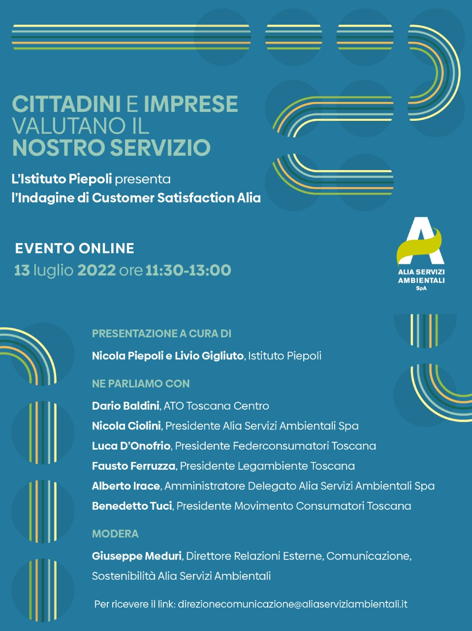 Si tratta di un evento online, per il quale è possibile registrarsi inviando una mail a direzionecomunicazione@aliaserviziambientali.it
