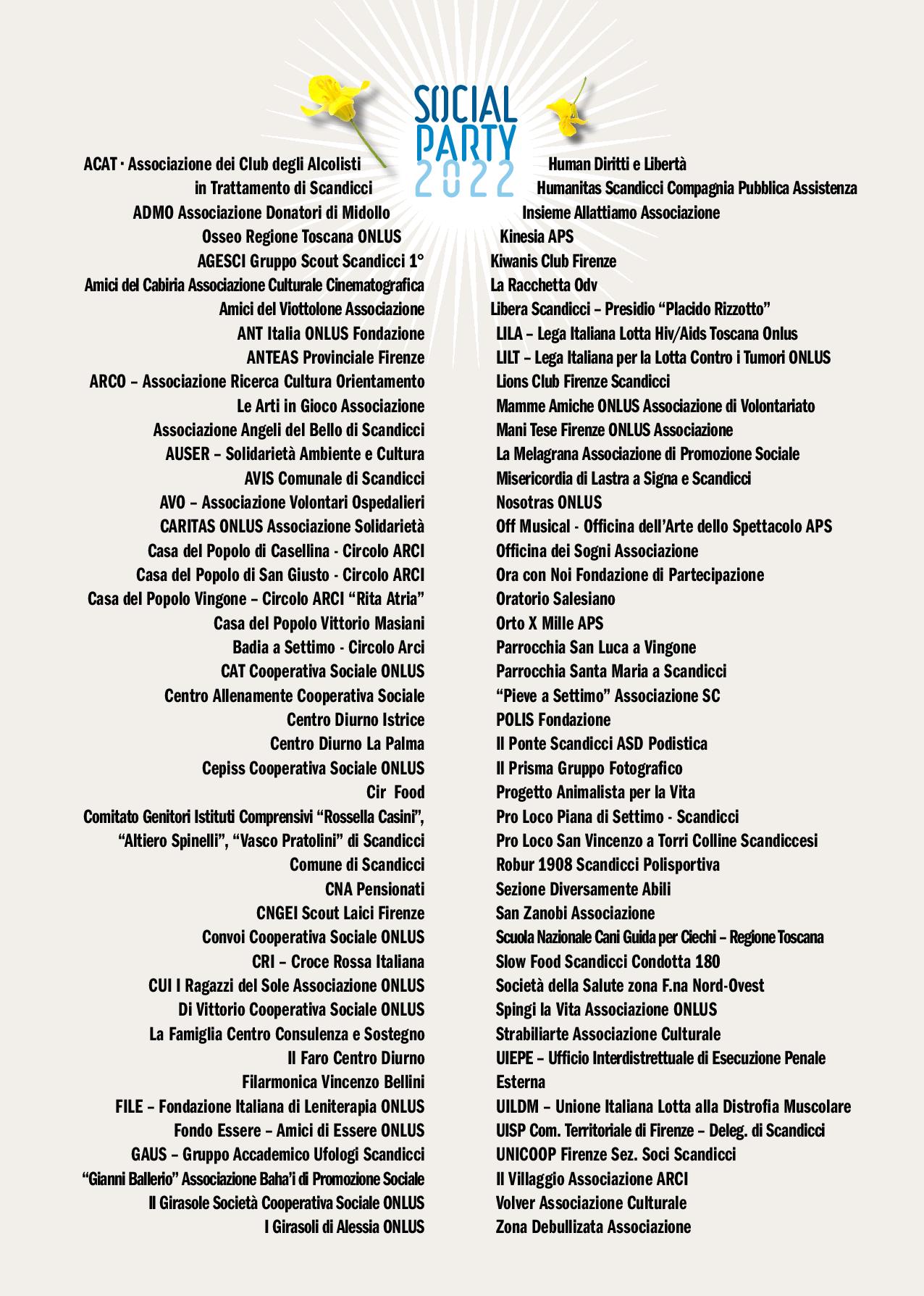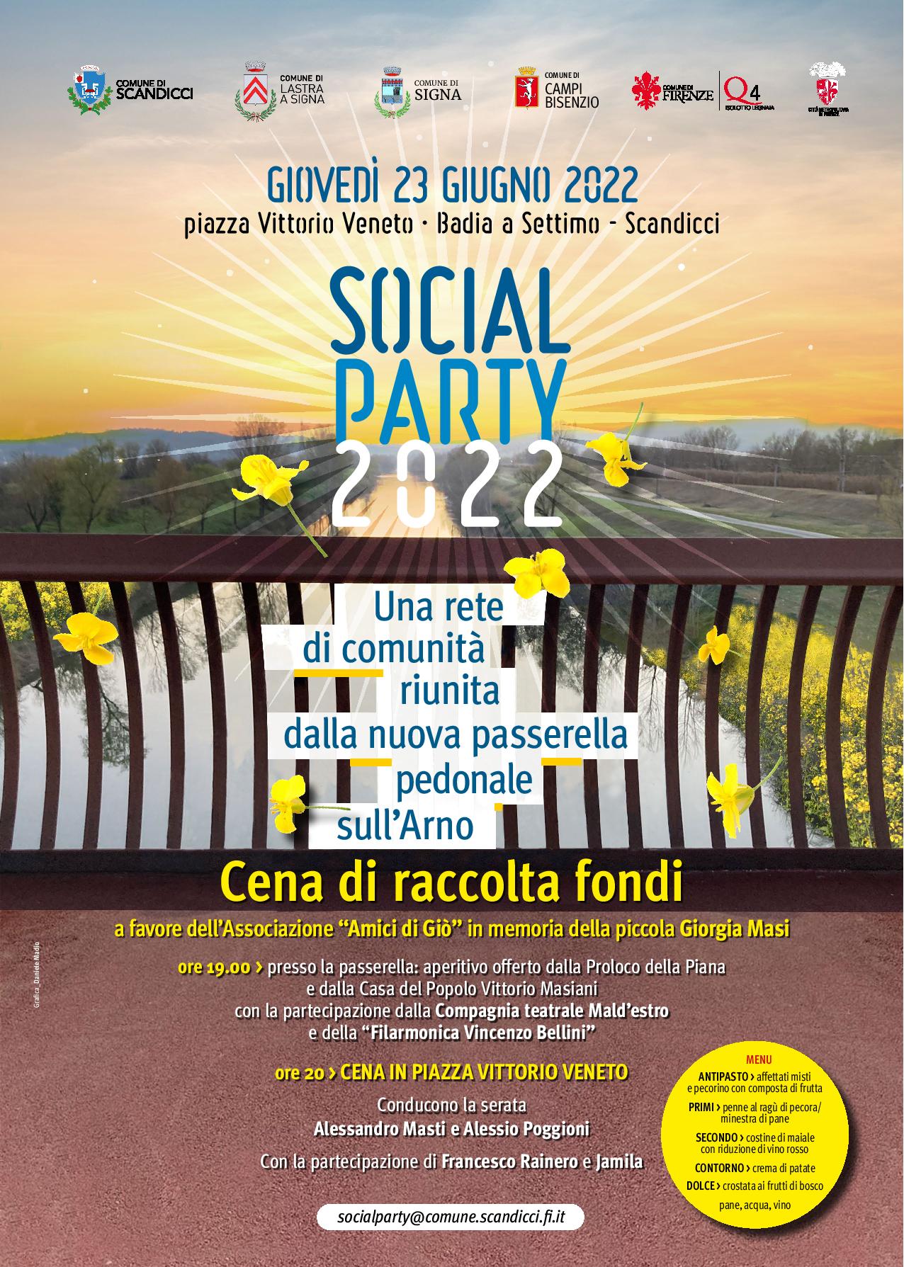 I Comuni di Scandicci, Lastra a Signa, Signa, Campi Bisenzio, il Quartiere 4 e la Città Metropolitana di Firenze organizzano Social Party 2022, che si svolgerà giovedì 23 giugno, a Badia a Settimo (Scandicci).