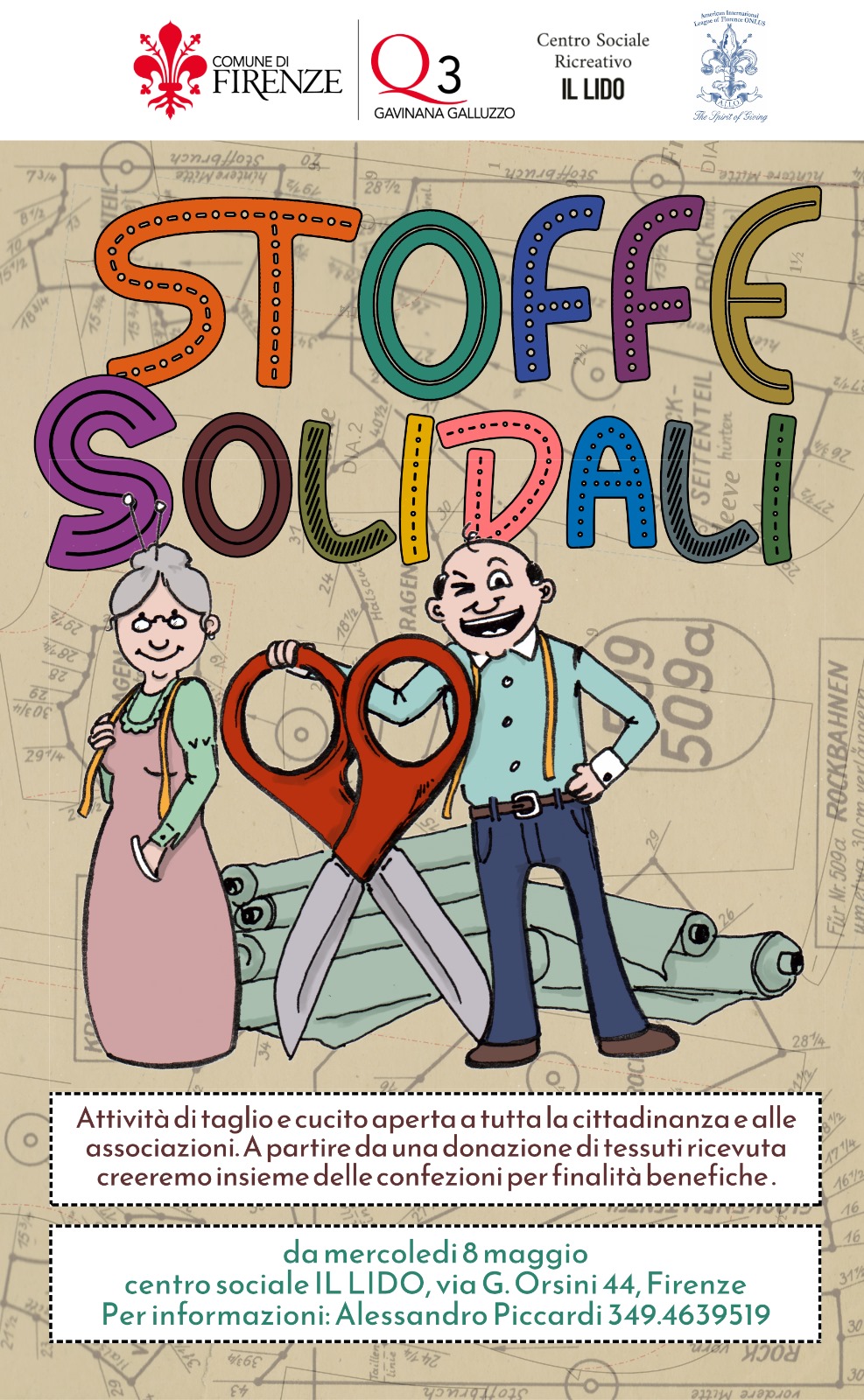 A partire da mercoledì 8 maggio 2024 dalle ore 9 alle ore 13 presso il Centro Sociale Ricreativo "Il Lido" (via G. Orsini, 44) si svolgerà "Stoffe Solidali", attività di taglio e cucito aperta a tutta la cittadinanza e alle associazioni: a partire da una donazione di tessuti ricevuta, verranno create insieme delle confezioni per finalità benefiche.