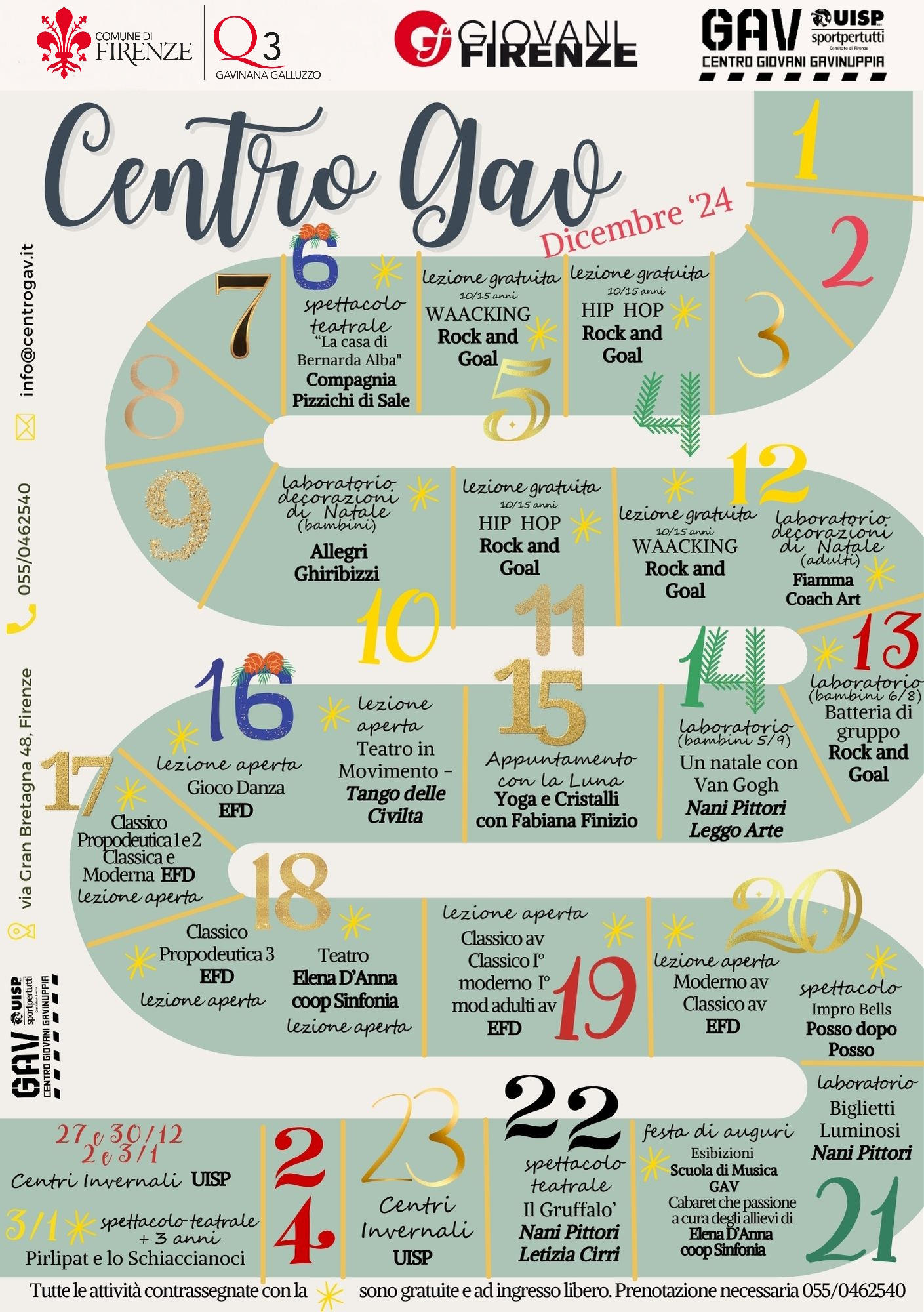 Il Centro Giovani Gavinuppia anche quest'anno propone per il tutto il mese di dicembre tante occasioni di incontro: lezioni aperte, esibizioni, laboratori natalizi e feste.