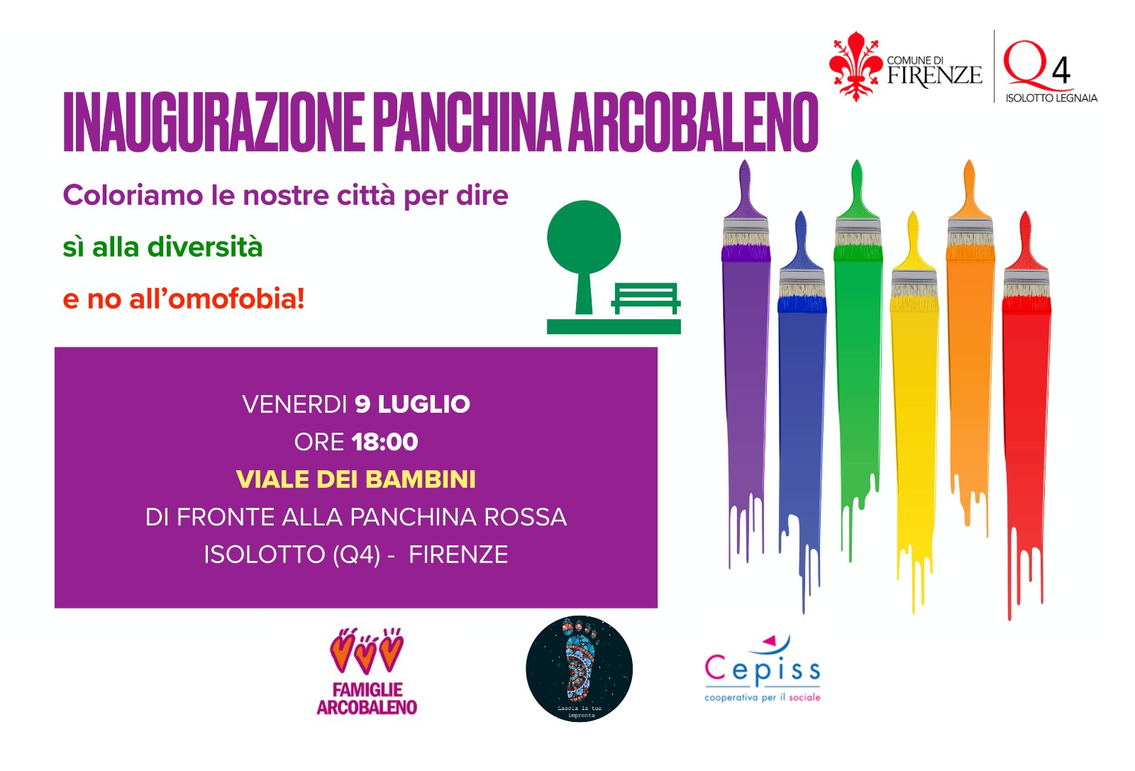 Venerdì 9 luglio inaugurazione della Panchina arcobaleno al Quartiere 4