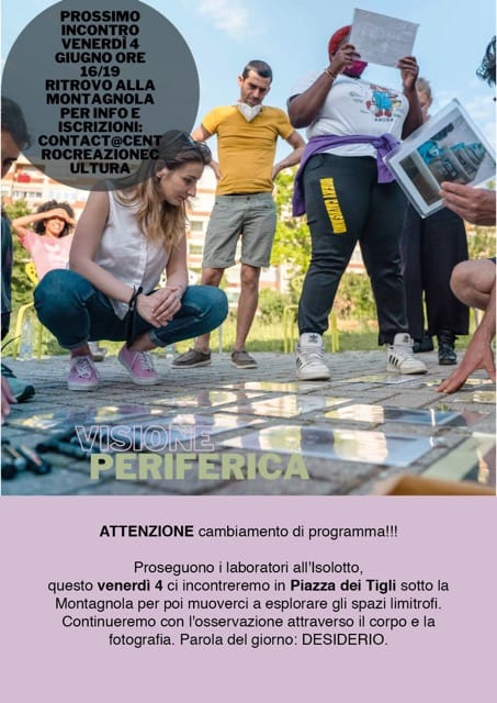 Il prossimo laboratorio all’Isolotto si svolgerà venerdì 4 luglio dalle 16 alle 19 in piazza dei Tigli sotto la Montagnola per muoversi e esplorare gli spazi limitrofi e attraverso il corpo e la fotografia con parola d’ordine: desiderio.