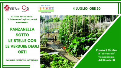Cena all'aperto in programma giovedì 4 luglio presso il Centro dell'età libera "Il Tabernacolo"